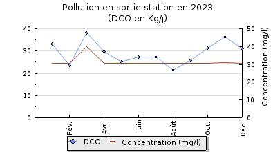 | DBO5 | 270 Kg/j | 56 % | 375 mg/l | 99 % | 2,8 Kg/j | 3,0 mg/l |
