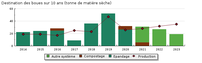 | Sous produits : Compte tenu du contexte lié à la crise sanitaire et à l'impossibilité d'épandre des boues non hygiénisées, l'exploitant a dû prendre les dispositions nécessaires en vue de les évacuer dans des conditions conformes. Ainsi, les boues sont dorénavant vidangées et dépotées sur la station de Saint-Sulpice, également exploitée par la société SUEZ. |