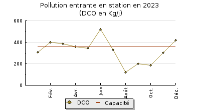 | DBO5 | 109 Kg/j | 61 % | 242 mg/l | 98 % | 1,9 Kg/j | 4,2 mg/l |