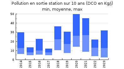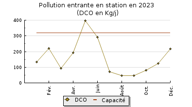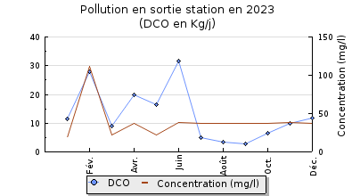 | DBO5 | 59 Kg/j | 27 % | 190 mg/l | 97 % | 1,8 Kg/j | 5,3 mg/l |