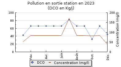 | DBO5 | 134 Kg/j | 99 % | 203 mg/l | 96 % | 4,7 Kg/j | 6,0 mg/l |