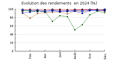 | Station d'épuration : Le site est clôturé et fermé par un portail. Il est bien entretenu. En 2024 le fonctionnement de la station est satisfaisant. Les concentrations du rejet respectent l'arrêté d'autorisation sauf 1 fois sur la concentration du rejet en MES où l'on dépasse les 35 mg/l (59 mg/l le 05/12/24). Les rendements épuratoires moyens sont excellents en étant supérieurs à 91% pour la pollution oxydable (DBO+DCO) les Matières En Suspension et l'azote global. Le rendement sur le phosphore total fluctue beaucoup. Sa moyenne est de 85%, mais il n'y a pas de contrainte règlementaire sur ce paramètre. En 2011, des travaux ont été réalisés sur le site de la station pour traiter les matières de vidanges d'une partie du département : mise en place d'un Carbofil. Lors de ces travaux, une rénovation de certains ouvrages a été effectuée. Une zone de contact et un bassin d'anoxie ont été réalisés. La capacité de la station est passée de 22 500 équivalents habitants à 33 000 équivalents habitants. - Prétraitements Le fonctionnement du tamis rotatif est satisfaisant. Le dégraisseur fonctionne correctement, mais des amas de filasse sont présents malgré le tamis en amont. - Prétraitements des Matières de Vidange Avec les très nombreux déchets contenus dans les matières de vidange (notamment des lingettes), de gros problèmes de colmatage du dégrilleur étaient notés. Les dépotages de MV posaient donc des problèmes pour les vidangeurs. Suite à cela le maître d'ouvrage a effectué des travaux en 2017 : Nettoyage des 3 fosses (il y avait 1 m de déchets en fond de chaque fosse), entretien, nettoyage et renouvellement des pièces d'usure du dégrilleur, installation de pompes dilacératrices avec un diamètre d'aspiration de 65 mm au lieu de 50 mm, rappels des règles de bonne utilisation pour les vidangeurs. Ces travaux ont permis d'améliorer le fonctionnement des prétraitements des MV. En effet il fallait déboucher les pompes plusieurs fois par jour, alors que maintenant un simple entretien courant suffit. - Zone de contact Une zone de contact de 91 m³ est présente. Elle reçoit les entrées (urbaines et industrielles), les matières de vidanges passées auparavant par l'ouvrage de Carbofil, et le recyclage des boues. Un bassin d'anoxie de 1029 m³ est également présent. - Bassin Tampon Ce bassin contient des matières de vidanges stockées depuis plusieurs années. Une partie des boues a été pompée puis envoyée en tête de station. Les 50 cm de boues restants sont plus pâteux et compacts, et des herbes poussent à la surface. - Bassin d'aération L'aération est calée sur des plages de fonctionnement horaire. L'exploitant rencontre des difficultés pour l'asservir à la sonde Redox. Les tubes d'aération ont été changés en septembre 2021, et les surpresseurs ont été révisés en 2021 aussi. - Clarificateur Une aspersion est installée, mais des écumes sont tout de même présentes. Lors des autosurveillances les prélèvements aux entrées et à la sortie se font proportionnellement au débit via les débitmètres station. Le matériel d'autosurveillance a été vérifié en février 2024 : Débitmétrie Entrée industrielle S1B : Le calage du débitmètre industriel est satisfaisant (5% d'écart). Entrée urbaine S1A : Le calage du débitmètre entrée urbaine est satisfaisant (4,8% d'écart). Rejet A4 : Le débitmètre station sous-estime de 8%. - La différence entre débit d'entrée (urbain 2121 + industriel 257 + MV 31 = 2409 m³) et débit de sortie (1950 m³) est trop élevé avec 10,5 % d'écart sur 24h, pour un débit du rejet inférieur. A2 : Le DO d'Azin est situé juste en amont du PR Stax (qui envoi toutes les eaux usées à la station). Le rejet du DO se fait dans le réseau de pluvial. Une sonde US est installée et mesure les débordements par le DO. Normalement s'il y a un débordement, une alerte SMS est envoyée. Le volume by-passé est mesuré par la sonde du DO et toutes les 24h un envoi récapitulatif des volumes by-passés est fait sur le PC bureau du Syndicat. Une cale a été installée p |