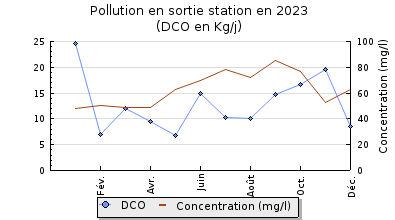 | DBO5 | 121 Kg/j | 101 % | 411 mg/l | 99 % | 1,4 Kg/j | 6,6 mg/l |