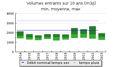 | Débit nominal temps pluie : | 3 250 m3/j |